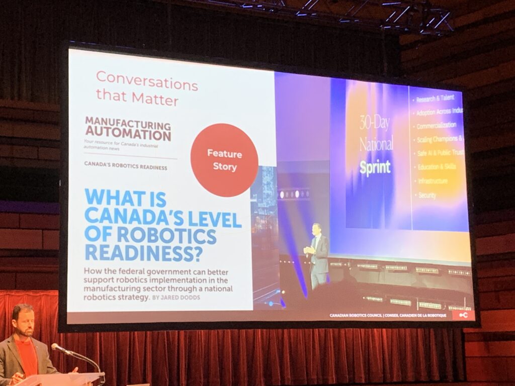 The event was opened with addresses from Hallie Siegel, chief executive officer of the CRC, Kevin Deluzio, professor and dean of the Stephen J.R. Smith Facility of Engineering and Applied Science at Queen’s University and Joshua Marshall, professor and Queen’s University, as well as CRC executive committee updates from Ryan Gariepy, chair of the CRC and vice president of robotics for Rockwell Automation, in which he shared the 31 per cent increase in attendees from the 2024 symposium and echoed Manufacturing AUTOMATION’s call for a national robotics strategy from the federal government.